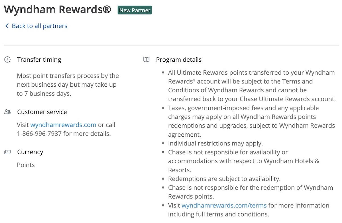 Chase Ultimate Rewards is the third major transferable points currency to partner with Wyndham Rewards. Capital One and Citi ThankYou are also 1:1 transfer partners with the program.