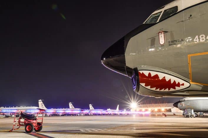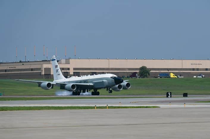An RC-135 COMBAT SENT waits on Offutt Air Force Base’s flightline, June 1, 2025. (Image Credit: U.S. Air Force photo by Chad Watkins)