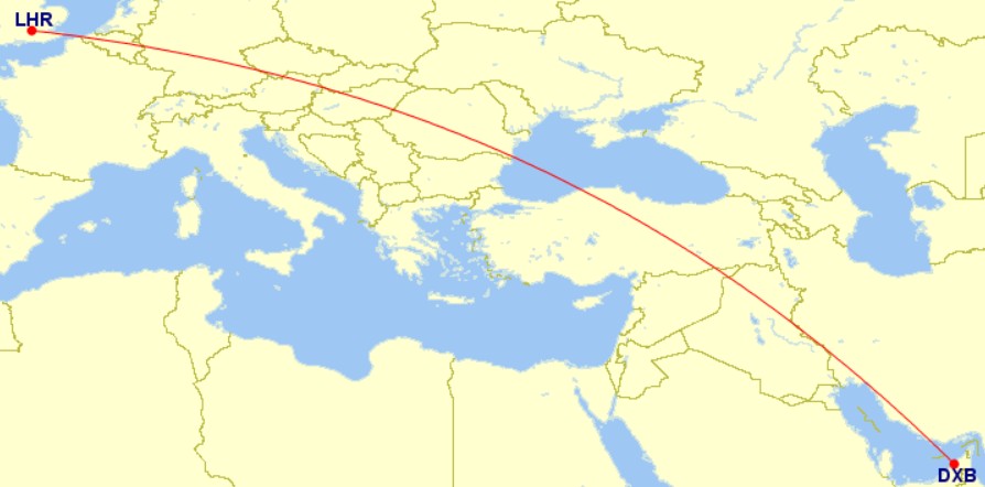 Flight EK41 will depart Dubai at 13:40 on Mondays, Tuesdays, Wednesdays, Saturdays, and Sundays, arriving in London Heathrow (LHR) at 17:40. On Thursdays, EK41 will depart Dubai at 12:55, arriving in London at 16:55 local time.
