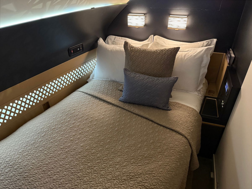 After dinner, unable to enjoy a movie together, they then decided to take a snooze, it being a red-eye after all. After a restful nap, they wanted to freshen up with a shower before landing. Lo and behold, the private shower wasn’t working. Cabin crew tried everything they could but to no avail.