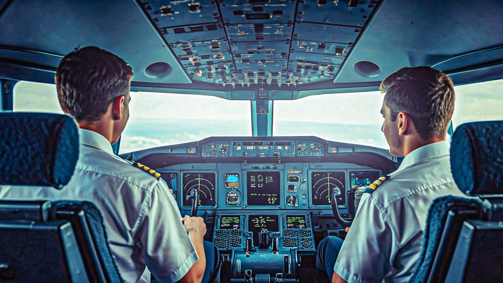 Sitting in the left seat with four stripes, the captain holds final responsibility for flight planning, fuel management, weather decisions, crew supervision, and emergency actions. The first officer, seated on the right with three stripes, supports these tasks, handling radio communication and system monitoring.
