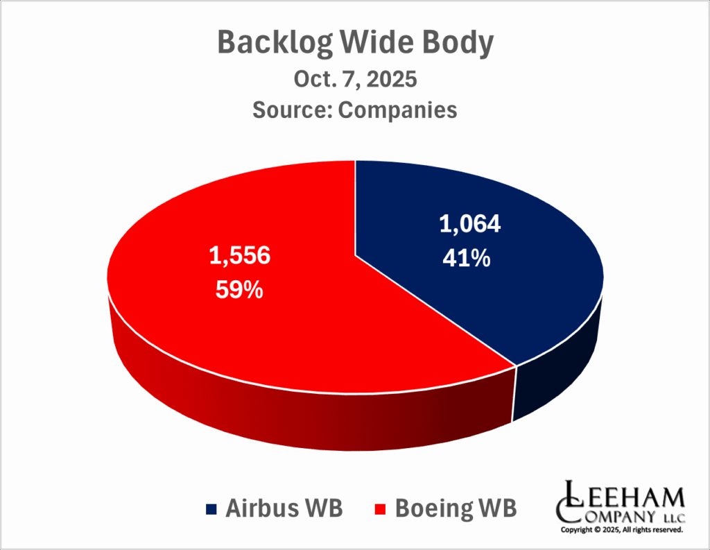 Boeing has 59% of the widebody backlog to Airbus’ 41%. These are the only two companies competing in this sector.