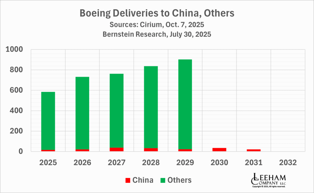 There was initial hand-wringing among some media that blocking deliveries would hurt Boeing. However, when Boeing’s delivery stream to China for the balance of Trump’s current term (which ends on Jan. 20, 2029) is examined, it’s clear that, while annoying, Boeing actually has few airplanes scheduled for delivery.