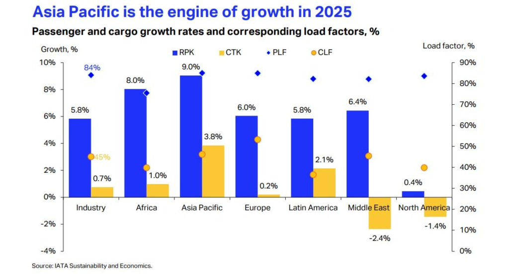 According to a June 2025 report by the International Air Transport Association (IATA), APAC is experiencing the fastest air travel expansion of 2025, its 9% year-over-year growth accounting for 52% of the industry’s overall growth. IATA attributes this surge partly to the resurgence of international travel.