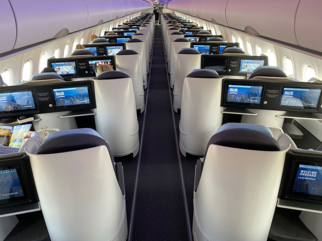 While La Compagnie’s business class seats as such aren’t cutting edge, there is something nice about traveling on a jet with fewer people, and for that matter the cabin also looks really cool.