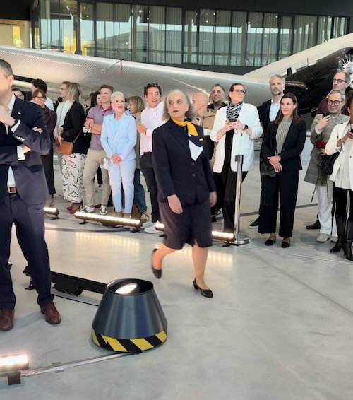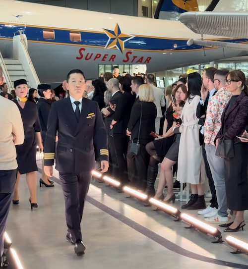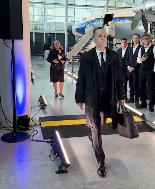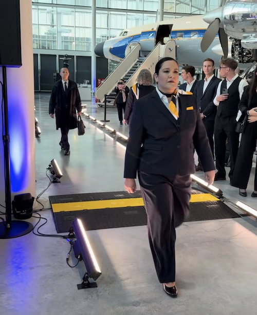 First let me say that I think it’s great that Lufthansa is using real employees for this runway show. It’s clear they were instructed to serve “model face,” but almost without exception, these employees have looks on their faces as if they’re about to have dinner with Carsten Spohr.