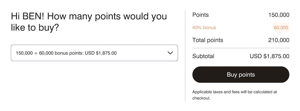 Ordinarily you can buy Bonvoy points for 1.25 cents each, before any discounts or bonuses. If you were eligible for the 40% bonus and maximized the offer, you could receive a total of 210,000 Bonvoy points (including 60,000 bonus points) at a cost of $1,875, which comes out to 0.89 cents per point.