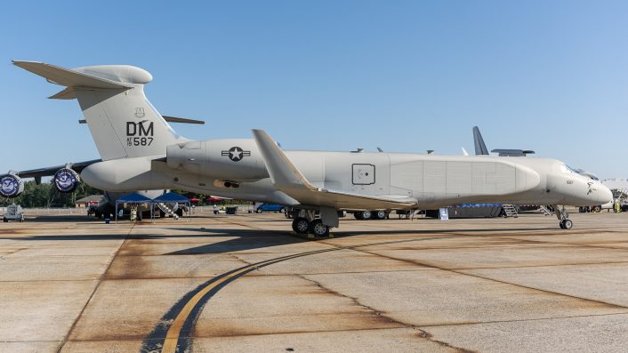 Standing beside the Compass Call on the tarmac, dressed in his flight suit and patiently fielding questions from curious visitors, the young 1st Lieutenant (now, newly pinned Captain) was both approachable and proud of the mission he represents. Though careful not to reveal classified details, he spoke candidly about the unique demands of flying the EA-37B and what it means to serve as part of a crew entrusted with such a specialized role. Our conversation offered a glimpse into the human side of a platform most people only read about in brief defense headlines.