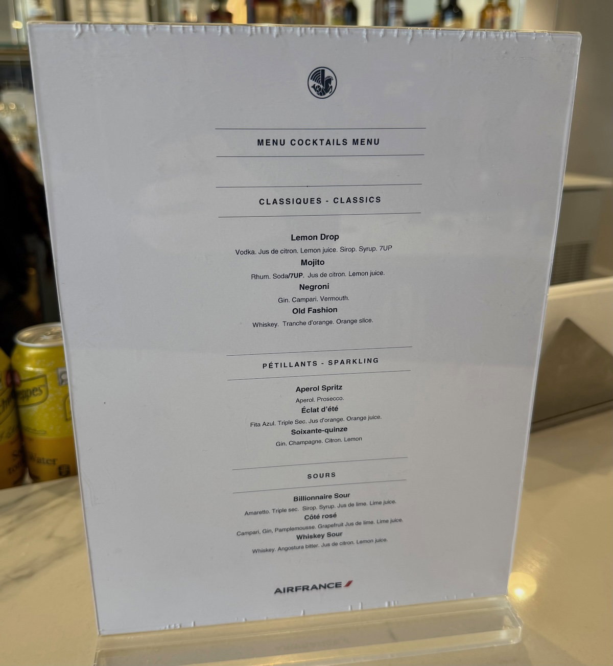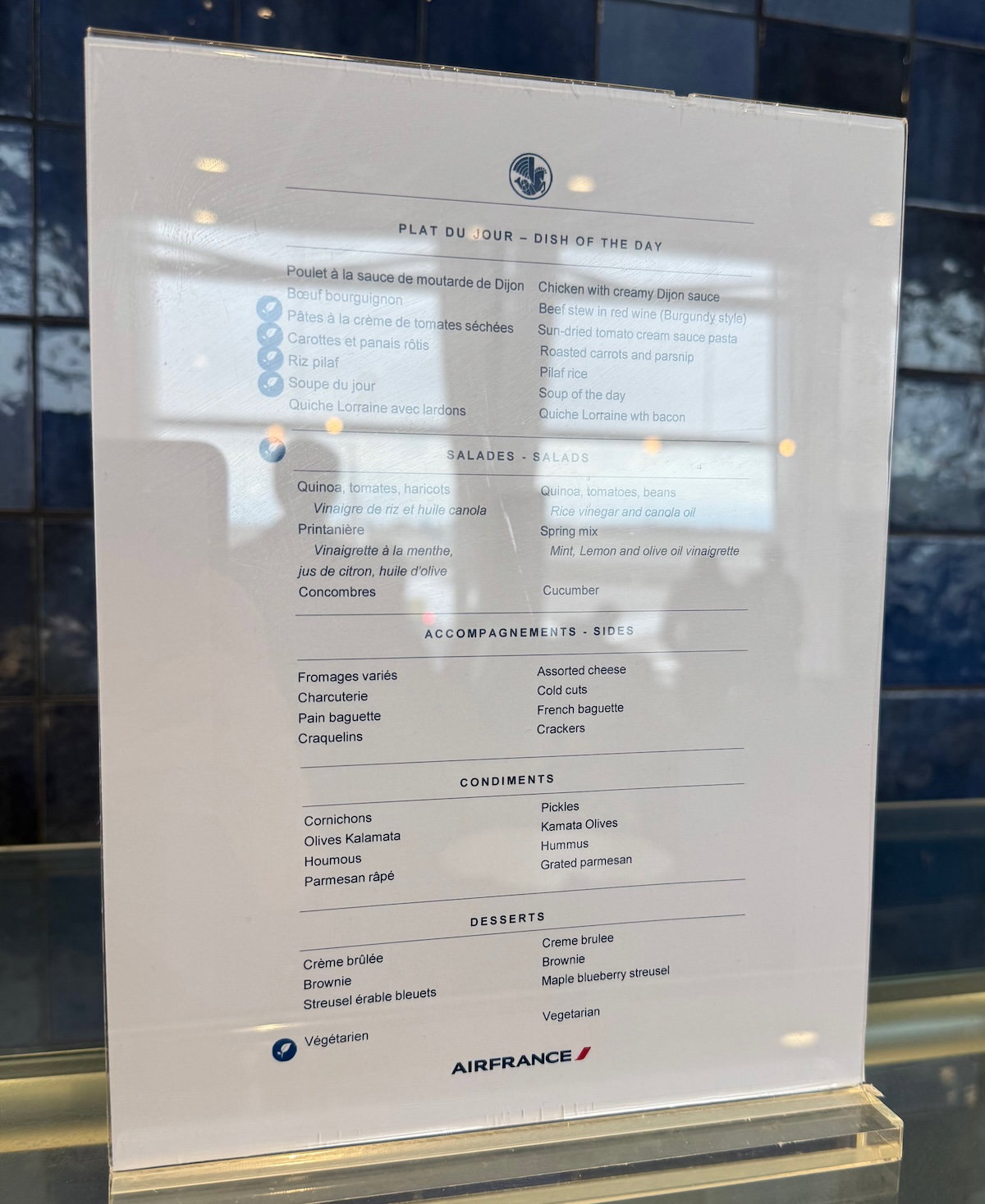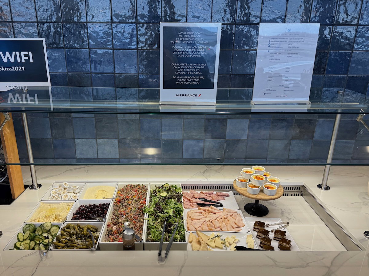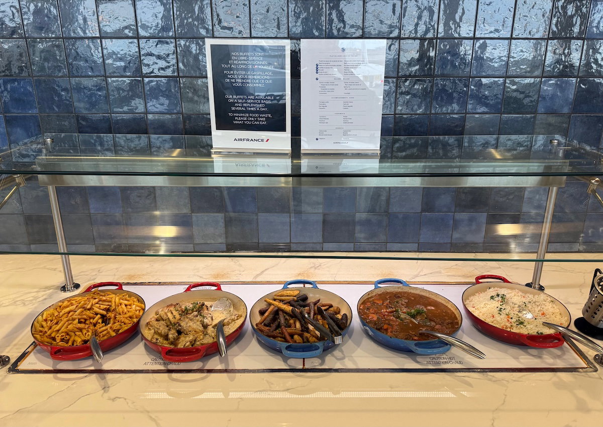 What’s the food and drink selection like in the Air France Lounge Montreal? During my afternoon visit, there was a self-serve food selection, and you can find the menu below.