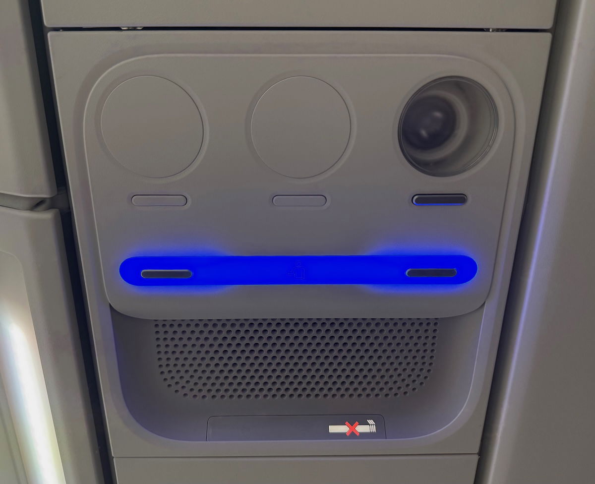 The only other things worth mentioning is that the cabin has individual air nozzles above each seat (separate from the reading light console, interestingly), as well as the larger Airbus Airspace overhead bins.
