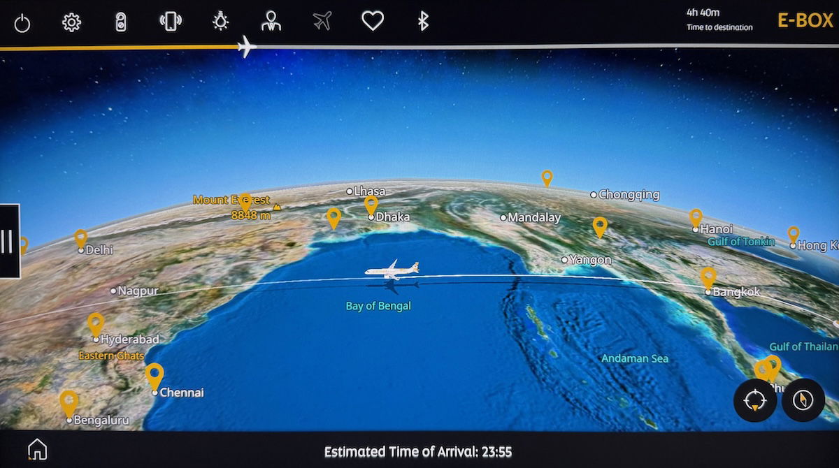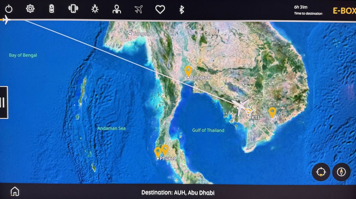 I ended up falling asleep around two hours after takeoff, with 4hr40min remaining to Abu Dhabi, while over the Bay of Bengal…