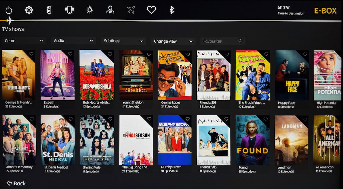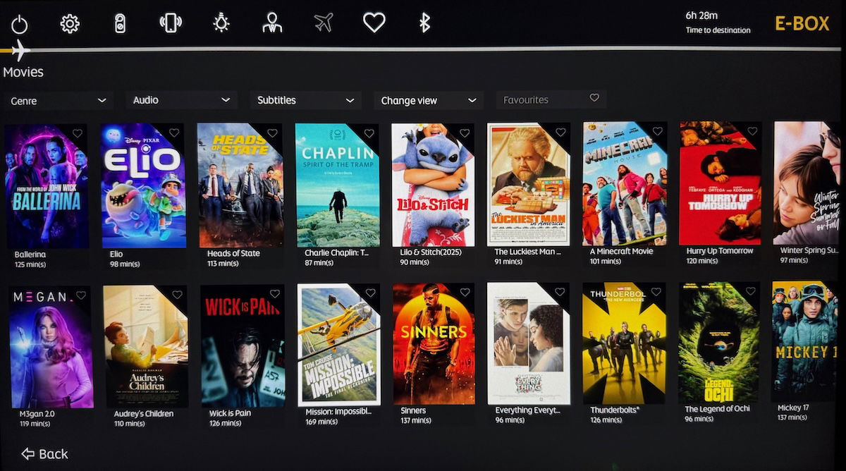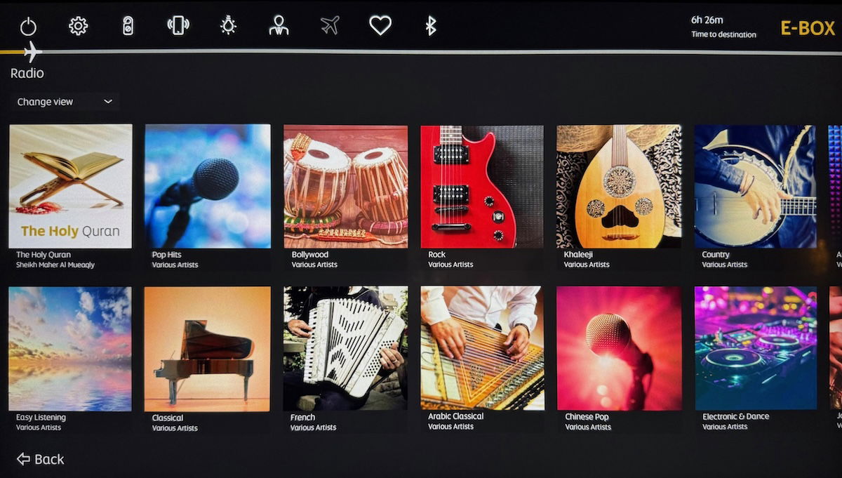 Etihad’s A321LR first class features 20″ high definition monitors, with the carrier’s well regarded E-BOX entertainment system. I found the system to be easy to use, and the selection of movies, TV shows, live TV, games, and music, was massive.