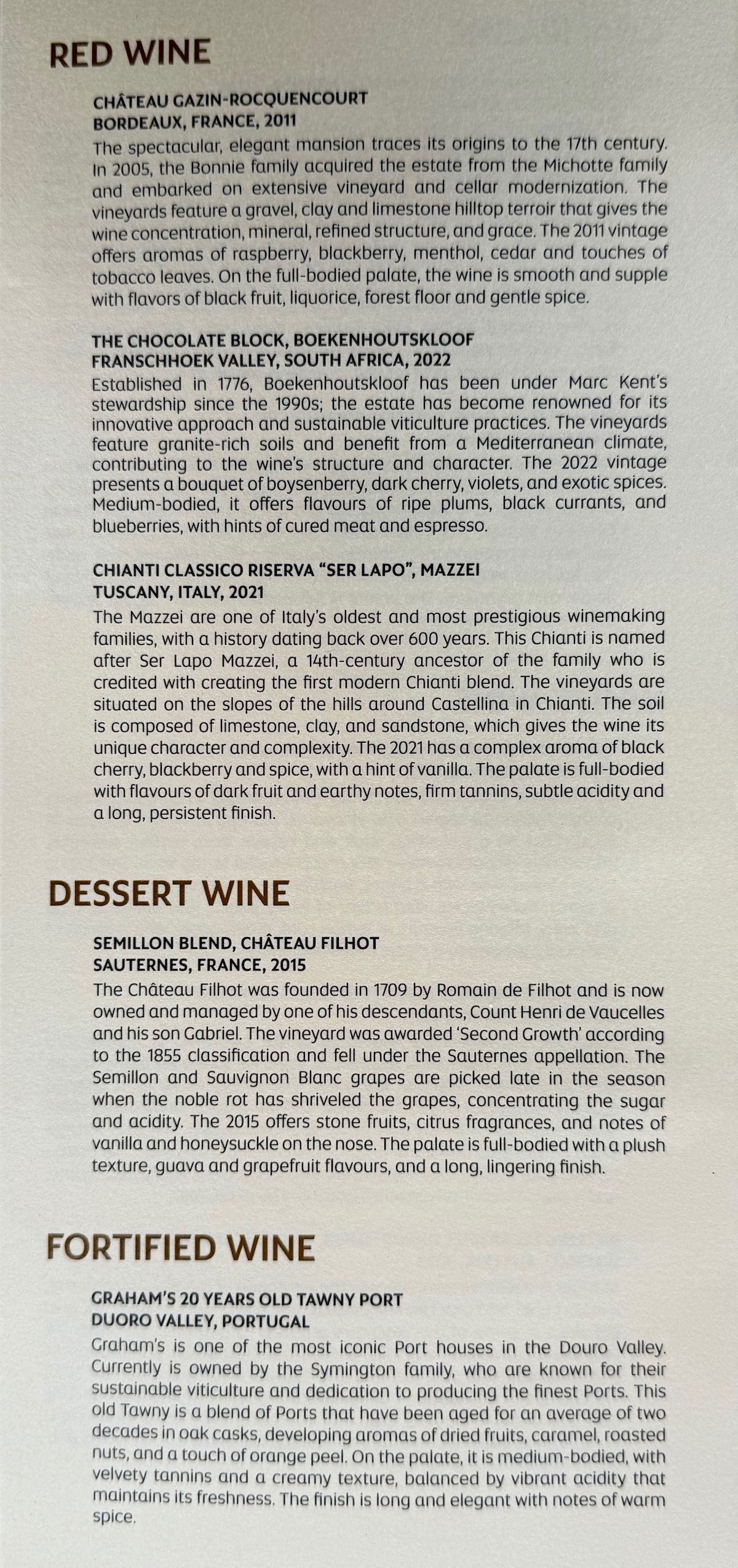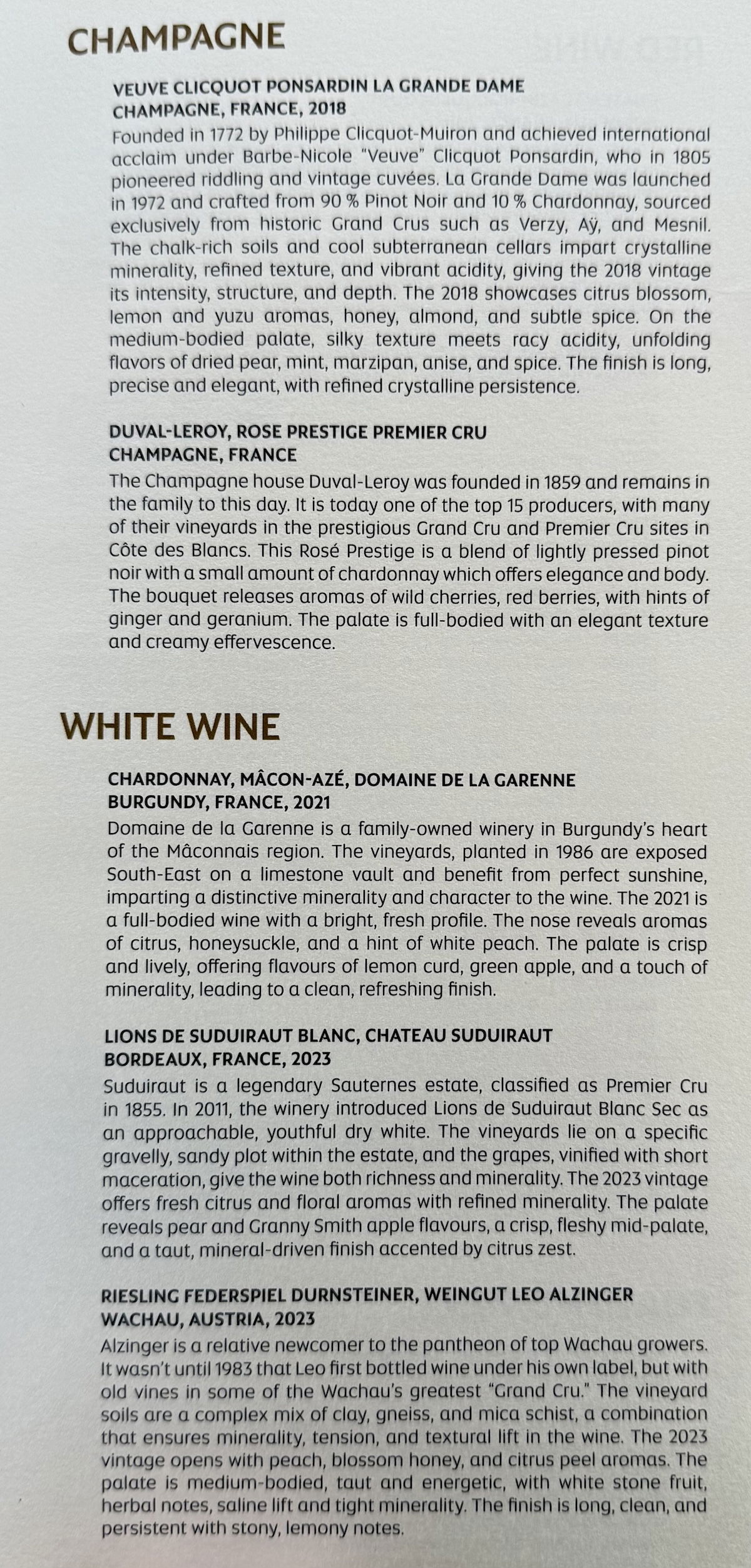 Etihad first class wine list