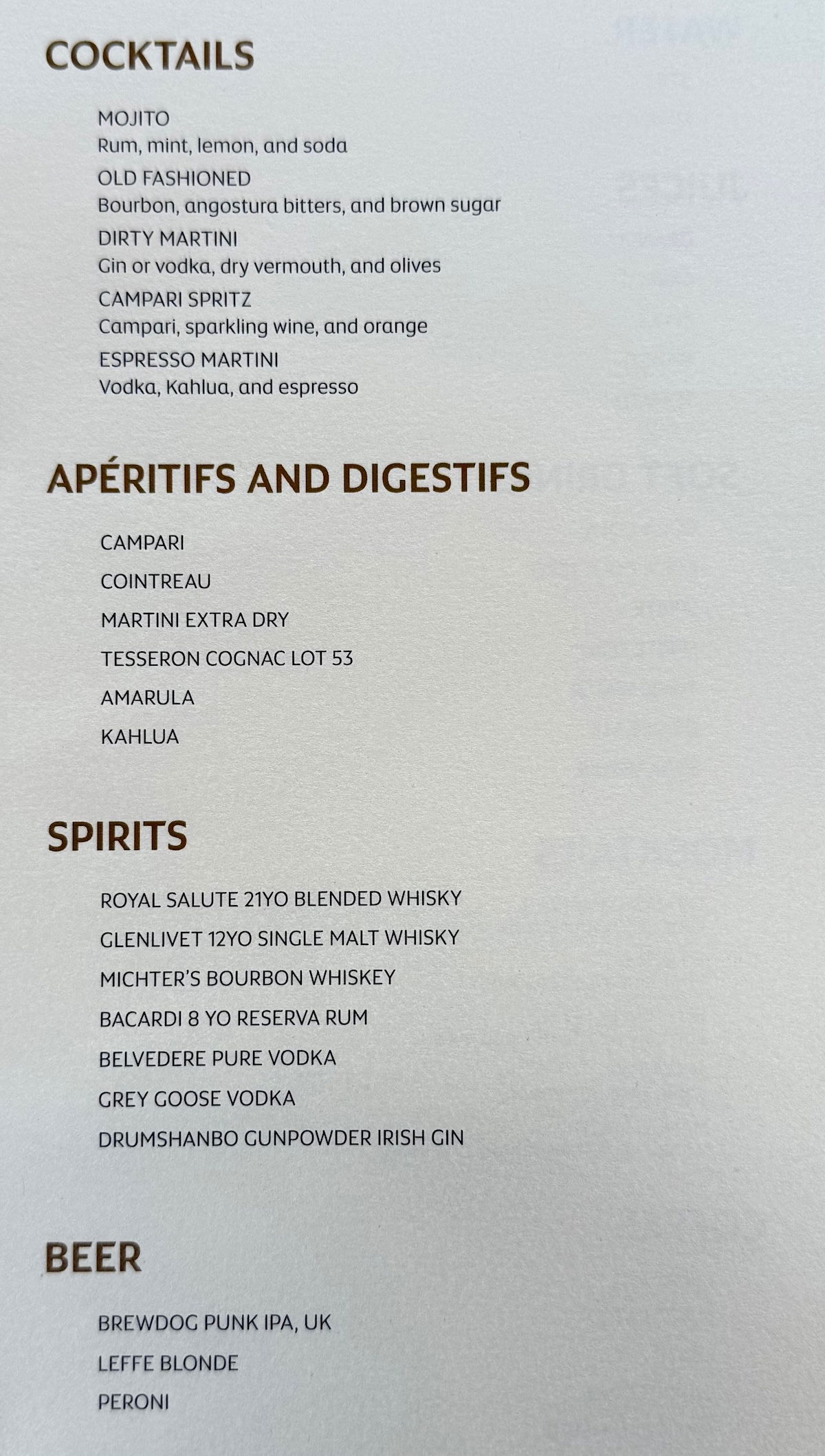Then you can find the Etihad drink list below.