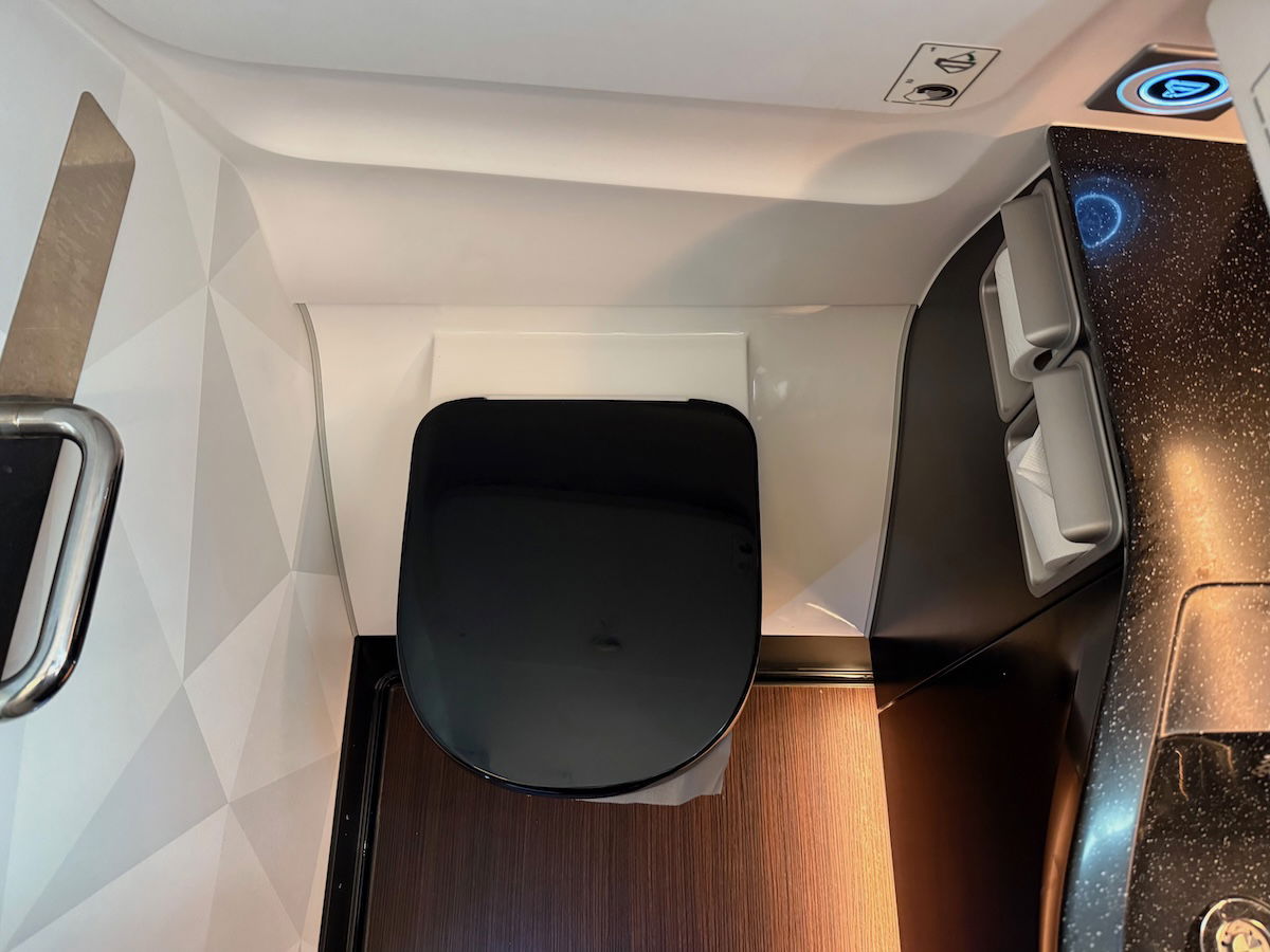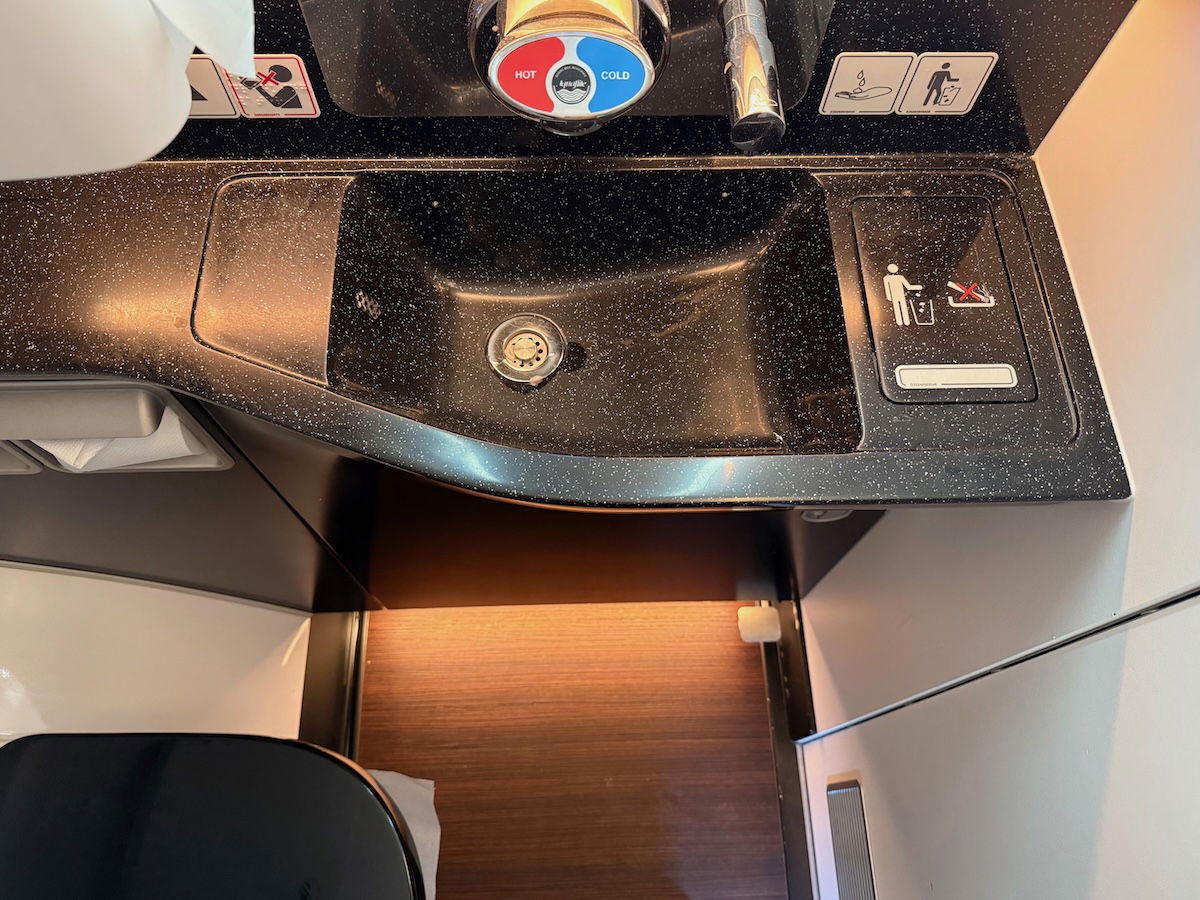 There’s no dedicated first class lavatory, but instead, the lavatory is also shared with all the business class passengers. So it’s not exactly the best ratio, though since my flight was pretty empty, this wasn’t an issue.