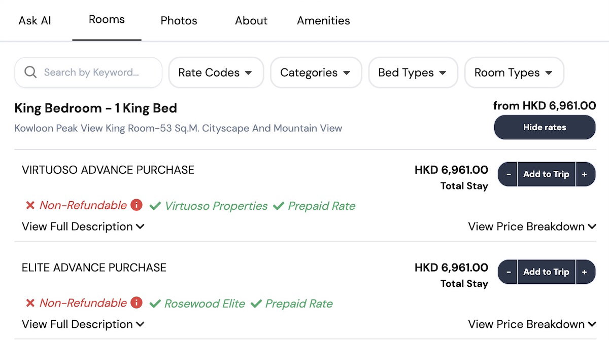 For example, this lets you see how you can apply Rosewood Elite benefits to a promotional, non-refundable rate…