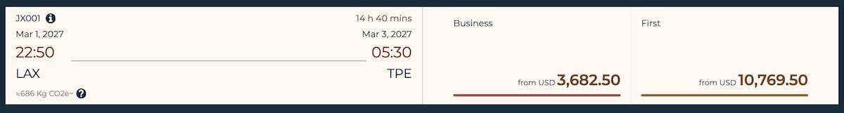 You won’t find a one-way transpacific first class fare that’s priced under $8,000 (at least not one that I’ve found). I should mention that Starlux also offers first class on some flights within Asia, and there you’ll typically find that the cabin is priced around $2,500 one-way. While this includes the full first class ground experience, the onboard soft product on these flights is scaled back considerably.