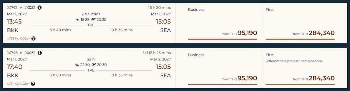 At these fares, I can’t imagine Starlux will be able to consistently fill any substantial number of seats. Even with just four seats, you’re not going to regularly find people willing to pay these kinds of fares, in my opinion. Furthermore, while Taipei is an amazing city, it’s not Hong Kong or Singapore in terms of pricing power for tickets (quite to the contrary, people often originate travel in Taipei to get cheaper premium fares).
