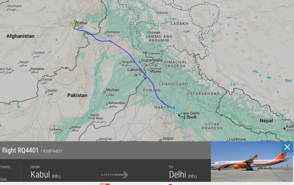 The scheduled passenger flight (flight number RQ4401) was operated by one of Kam Air’s fleet of four Airbus A340-300s with registration marks YA-KME. According to data obtained from Flightradar24, the aircraft departed from Kabul Airport at 07:56 local time and landed one hour and 37 minutes later in Delhi at 10:33 local time.