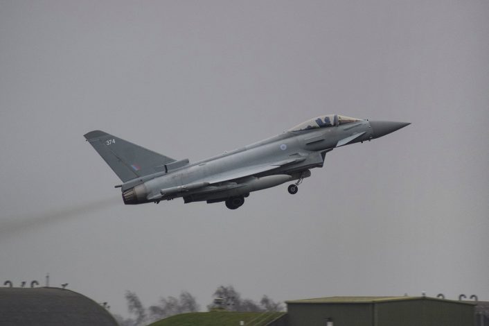 Typhoon FGR4 ZK374 taking off from RAF Coningsby, bound for Qatar. (Image credit: Luke Tuffs)