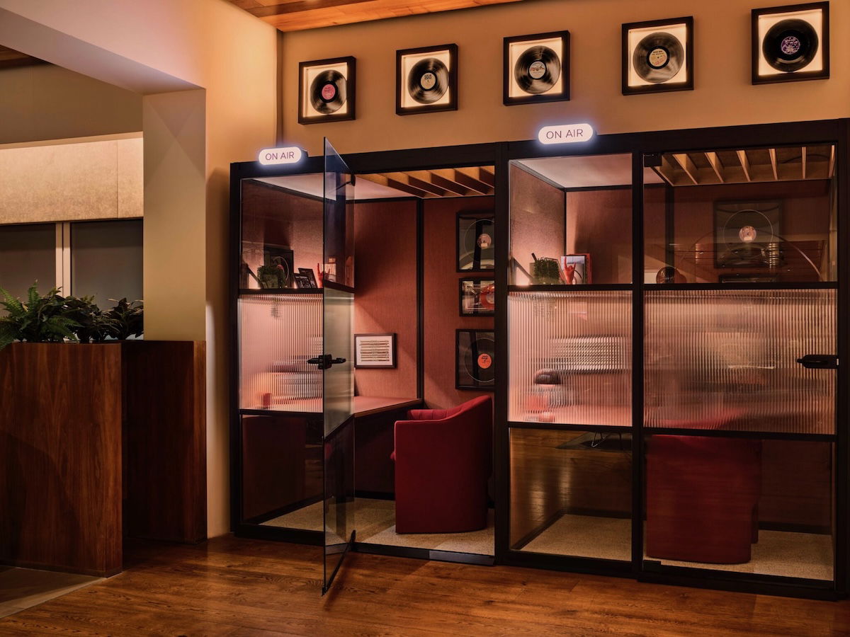 The lounge also has two new work pods, the first time the lounge has had truly private workspaces. These are styled as a tribute to Virgin Records, and the pods are named “The Townhouse” and “The Manor,” with each space having studio-inspired artwork, integrated power, and a desk.
