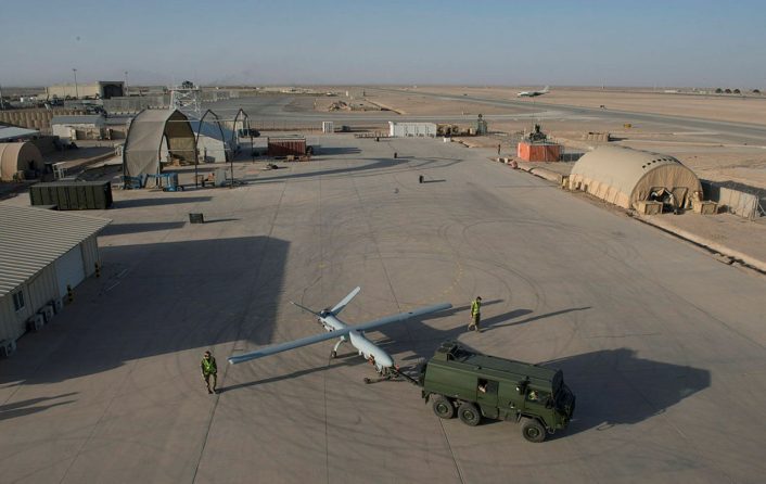 Watchkeeper unmanned aerial vehicle (UAV) in Camp Bastion, Helmand, Afghanistan, 2014. (Image credit: Corporal Mark Larner RY/Crown Copyright)